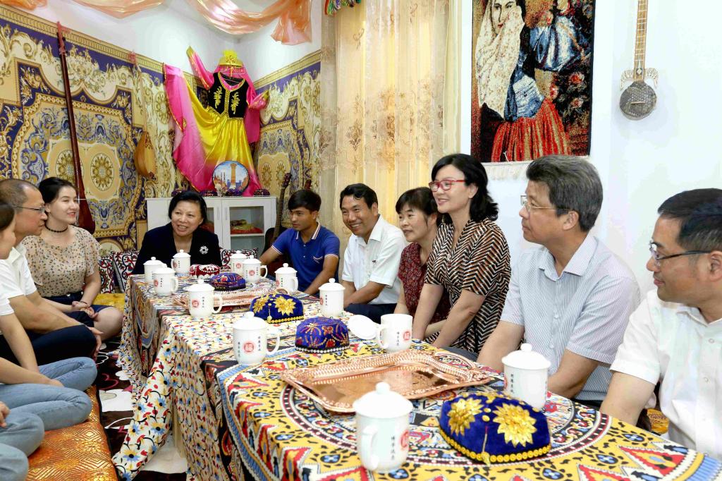 表彰会后,雷春美部长一行参观考察了“福州大学刘敏榕工作室—少数民族学生之家”,并慰问了福大新疆籍学生。(图/周师炜)
