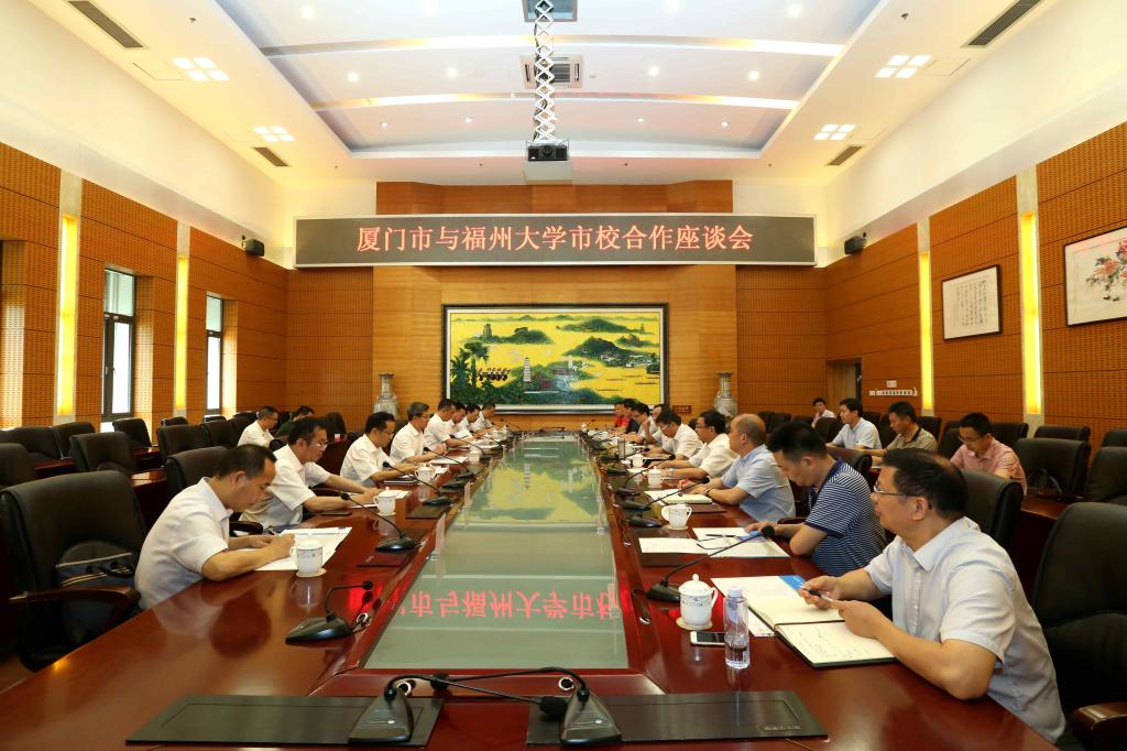 新闻中心讯/6月26日下午,厦门市市长庄稼汉、副市长李辉跃一行8人来到福州大学访问交流。校长付贤智、副校长黄志刚热情接待了来宾,并在行政南楼123会议室举行了市校合作座谈会。